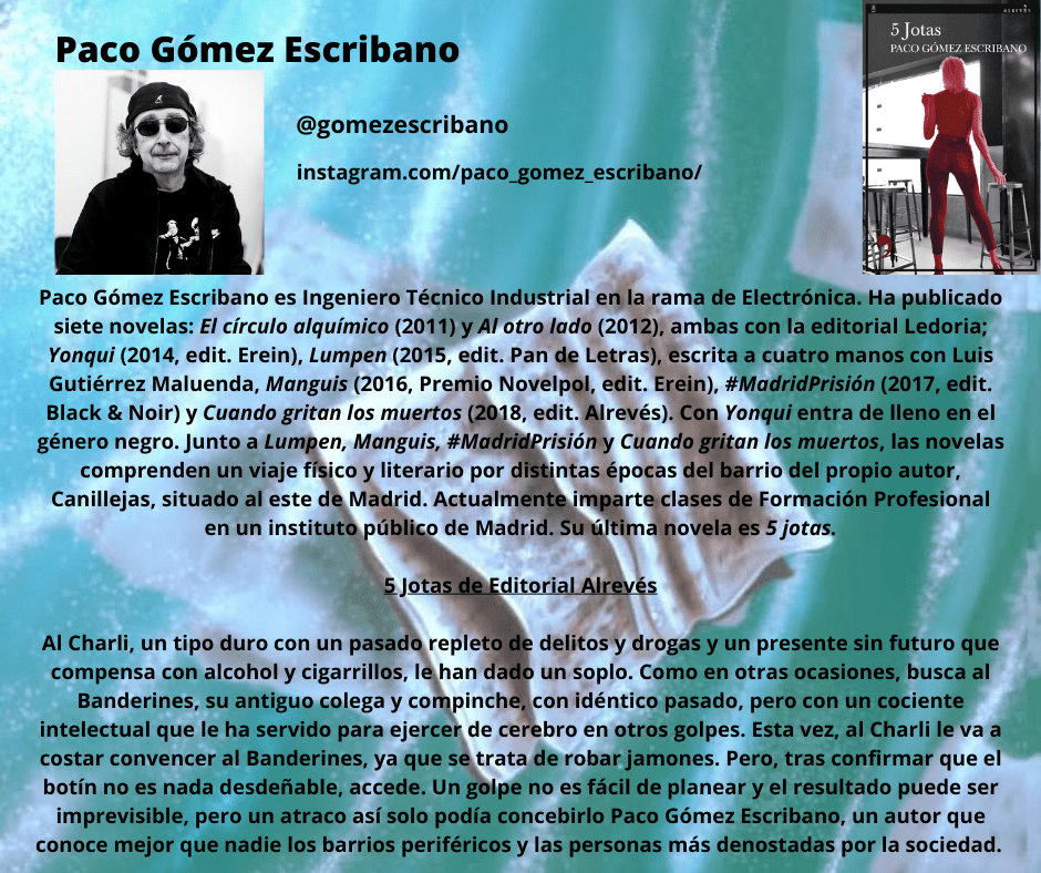 Paco Gómez Escribano: 19 d’agost: Debat sobre Clàssics de la novel·la negra en temps de supermercats. 20 d’agost: Homenatge a Javier Abasolo i Domingo Villar
