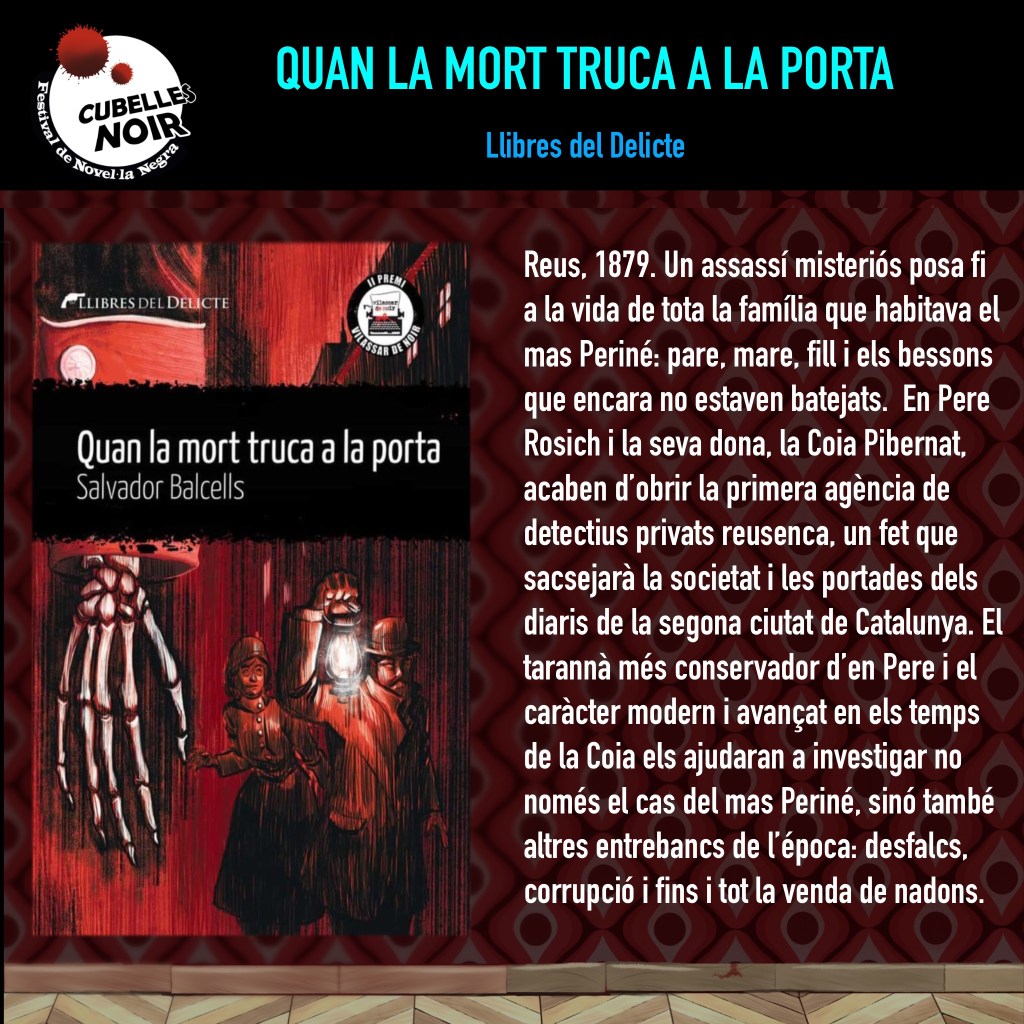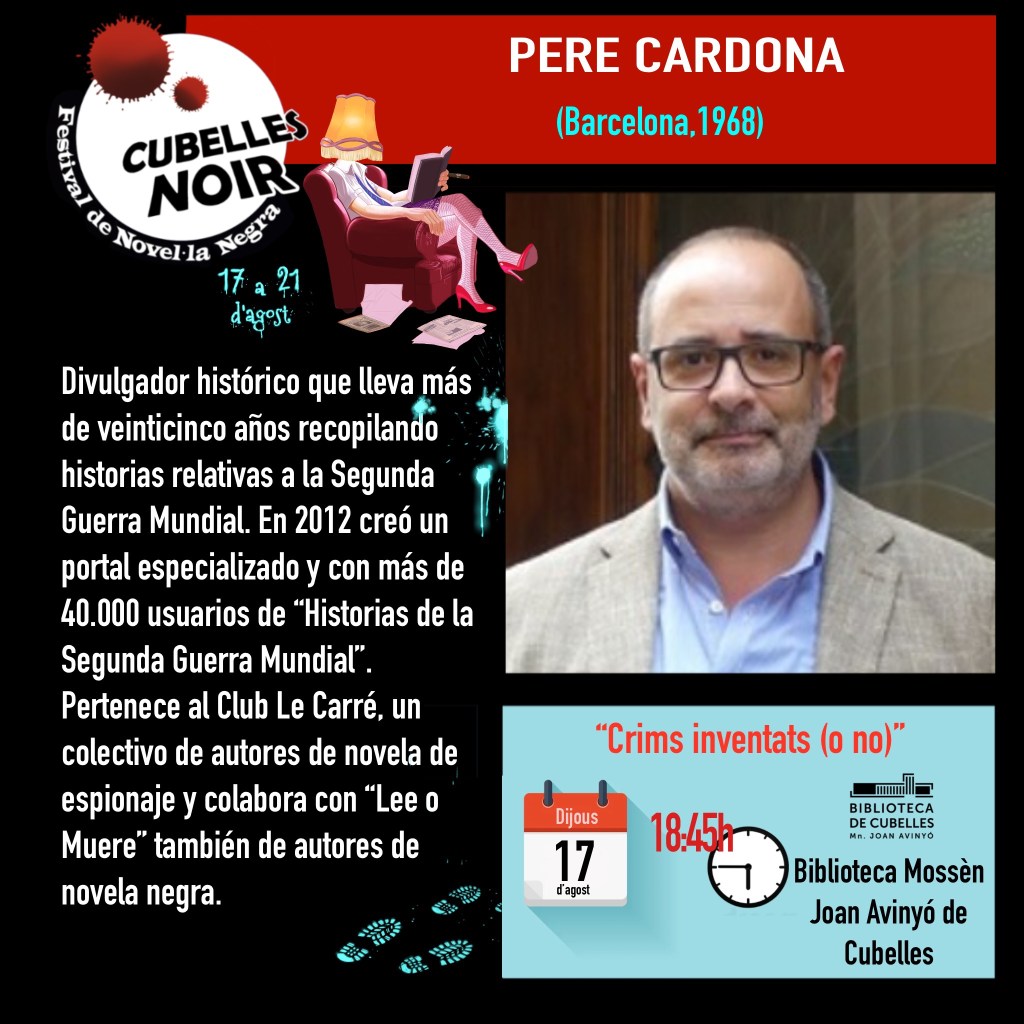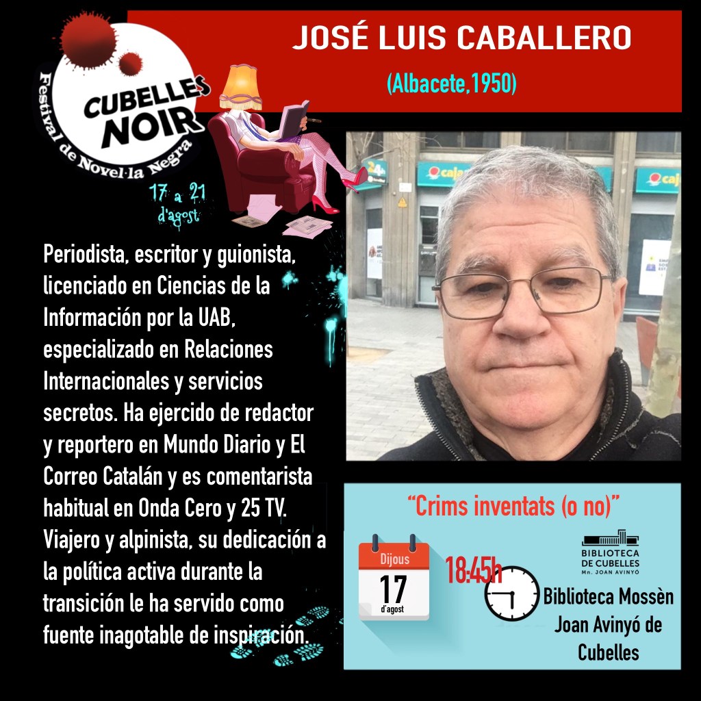 Sin categoría Programació Dijous 17 tarda Publicat per cubellesnoir el 15 Agost, 202317 Agost, 2023 Dijous 17 tarda, Biblioteca Mossèn Joan Avinyó de Cubelles. 17:30 h Debat: El noir dia a dia amb Maria Rosa Nogué, Salvador Balcells, Virna Esteve. Modera Pedro Hache. 18:45 h Xerrada: Crims invetats (o no) amb Pere Cardona i José Luis Caballero. Comparte:Comparteix Feu clic per compartir a X (S'obre en una nova finestra) X Feu clic per compartir al Facebook (S'obre en una nova finestra) Facebook Feu clic per enviar un enllaç per correu electrònic a un amic (S'obre en una nova finestra) Correu electrònic Feu clic per compartir al Pinterest (S'obre en una nova finestra) Pinterest M'agrada S'està carregant... Relacionats
