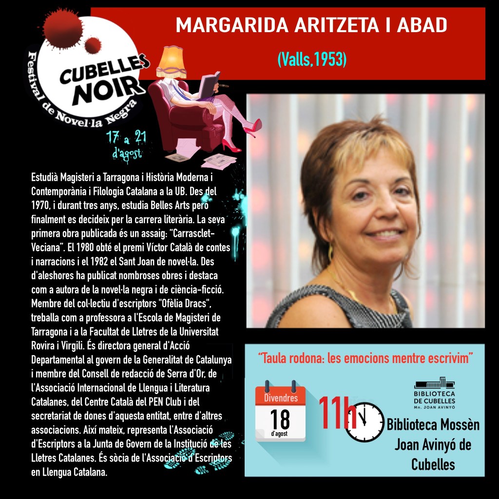 11:00 h Taula Rodona Les emocions mentre escrivim amb Maribel Torres, Cristina Malagelada, Margarida Aritzeta i Sílvia Mayans. Modera Mónica Socias Güell.