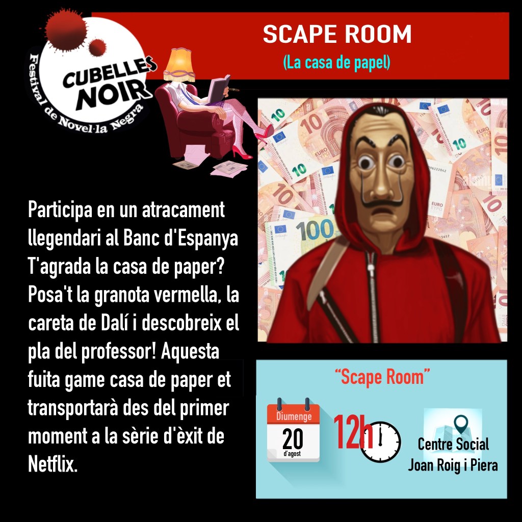 Sin categoría Diumenge 20 el primer Scape Room a Cubelles Noir Publicat per cubellesnoir el 20 Agost, 2023 Diumenge 20 matí.Centre Social Joan Roig i 12.00 h Scape Room.14:00 h Clausura i balanç de l’acte per part dels dirigents i membres de la junta amb la intervenció de l’ajuntament. Brindis amb cava i quelcom per picar. Comparte:Comparteix Feu clic per compartir a X (S'obre en una nova finestra) X Feu clic per compartir al Facebook (S'obre en una nova finestra) Facebook Feu clic per enviar un enllaç per correu electrònic a un amic (S'obre en una nova finestra) Correu electrònic Feu clic per compartir al Pinterest (S'obre en una nova finestra) Pinterest M'agrada S'està carregant... Relacionats