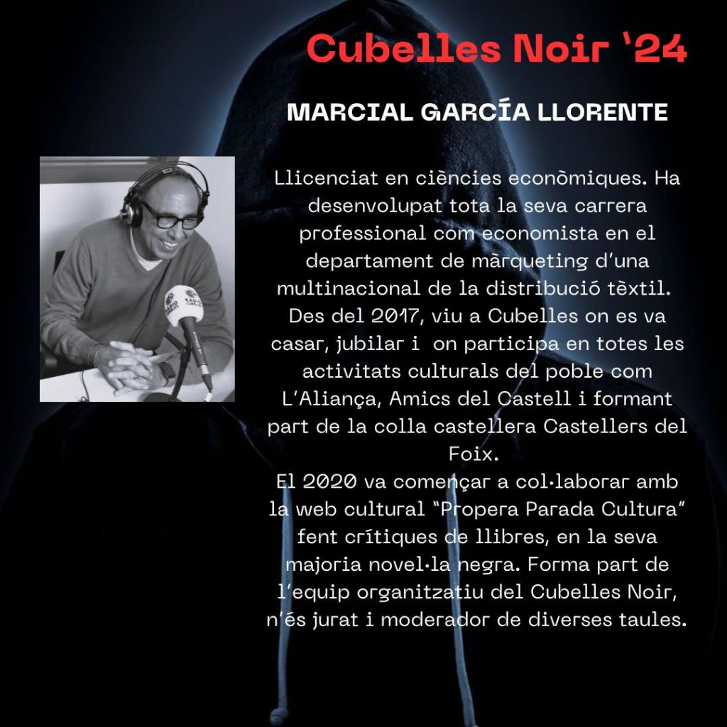 ajuntamentdecubelles, cubellesnoir, cubellesnoir24, garrafsona, novelanegra, novel·la negra Presentem a … Marcial García Llorente Publicat per cubellesnoir el 5 Agost, 202412 Agost, 2024 Presentem a Marcial García Llorente que moderarà la taula rodona sobre “Evolució del gènere: del llibre a la pantalla” el dissabte a les 11 h. Comparte:Comparteix Feu clic per compartir a X (S'obre en una nova finestra) X Feu clic per compartir al Facebook (S'obre en una nova finestra) Facebook Feu clic per enviar un enllaç per correu electrònic a un amic (S'obre en una nova finestra) Correu electrònic Feu clic per compartir al Pinterest (S'obre en una nova finestra) Pinterest M'agrada S'està carregant... Relacionats