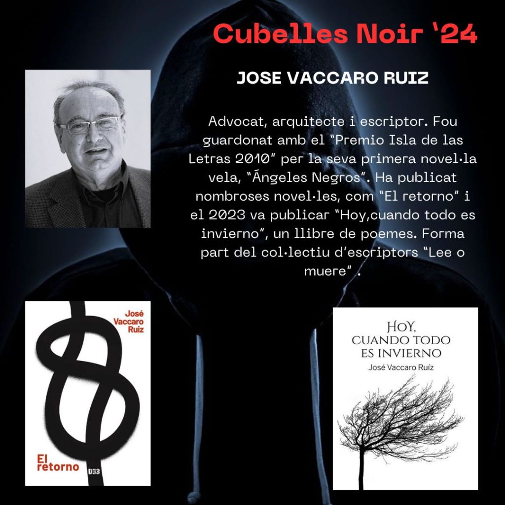ajuntamentdecubelles, cubellesnoir, cubellesnoir24, garrafsona, novelanegra, novel·la negra Presentem a… José Vaccaro Publicat per cubellesnoir el 10 Agost, 2024 Presentem a… José Vaccaro que participarà a la taula rodona sobre “La creació d’una trama fosca” el divendres al matí a la Biblioteca Mn. Joan Avinyó. Comparte:Comparteix Share on X (S'obre en una nova finestra) X Comparteix al Facebook (S'obre en una nova finestra) Facebook Email a link to a friend (S'obre en una nova finestra) Correu electrònic Share on Pinterest (S'obre en una nova finestra) Pinterest M'agrada S'està carregant... Relacionats