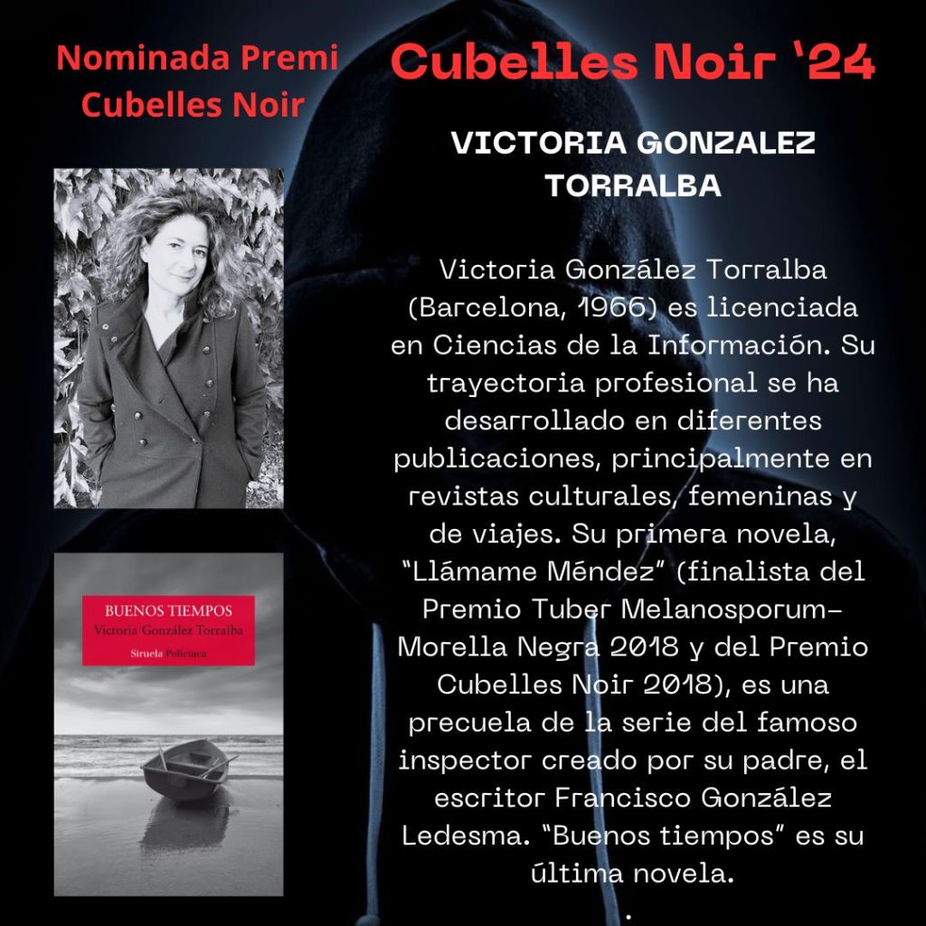 ajuntamentdecubelles, cubellesnoir, cubellesnoir22, cubellesnoir24, garrafsona, novelanegra, novel·la negra, vilanova_abacus Nominada al premi Cubelles Noir en castellà: Victoria González Torralba Publicat per cubellesnoir el 17 Agost, 2024 Nominada al premi Cubelles Noir a la millor novel·la negra escrita per una dona i publicada el 2023 en llengua castellana: “Buenos tiempos” de Victoria González Torralba. Siruela Policiaca. Comparte:Comparteix Feu clic per compartir a X (S'obre en una nova finestra) X Feu clic per compartir al Facebook (S'obre en una nova finestra) Facebook Feu clic per enviar un enllaç per correu electrònic a un amic (S'obre en una nova finestra) Correu electrònic Feu clic per compartir al Pinterest (S'obre en una nova finestra) Pinterest M'agrada S'està carregant... Relacionats